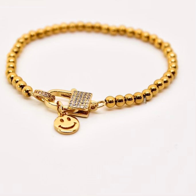 Lock clasp bracelet styled with a smiley face charm