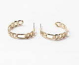 Figaro chain link hoop earrings. Available in gold.
